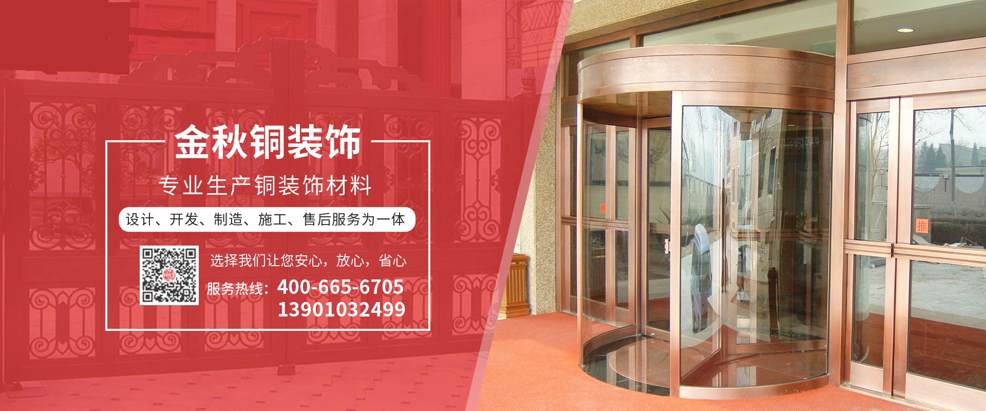 北京金秋銅裝飾材料有限公司是專業(yè)生產(chǎn)銅裝飾材料及設(shè)計(jì)、開(kāi)發(fā)、制造、施工、售后服務(wù)為一體的大型綜合企業(yè)??沙薪咏ㄖ~裝飾工程及五星級(jí)酒店、別墅、博物館、樓樘管所等高檔銅裝飾項(xiàng)目;生產(chǎn)各種規(guī)格的旋轉(zhuǎn)門(mén)、平滑門(mén)、別墅門(mén)、電控門(mén)、工藝門(mén)、旋轉(zhuǎn)護(hù)欄、屋頂銅飾防水瓦、浮雕壁畫(huà)......